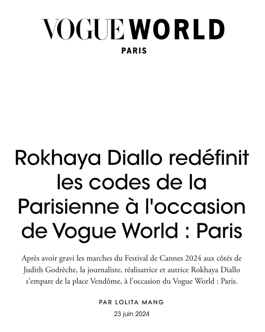 Talent: Rokhaya Diallo wearing Kenzo Archives, styled by Ib Kamara at Vogue World (Runway) year: 2024